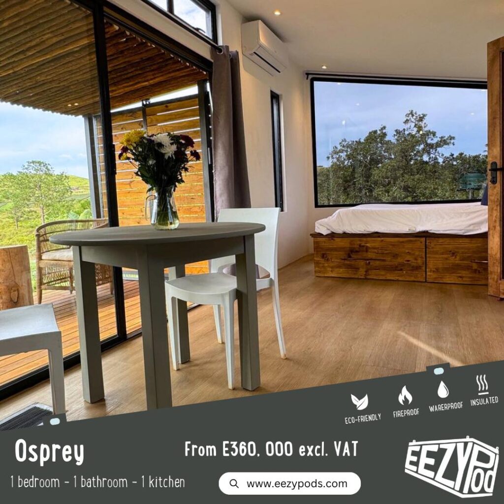 Driven by his passion for design and sustainability, Roques took on the bold challenge of creating Eswatini’s first pod house in Dwaleni, an effort that led to the founding of EezyPods, a company that crafts high-quality, sustainable modular pods blending comfort, efficiency, and style.