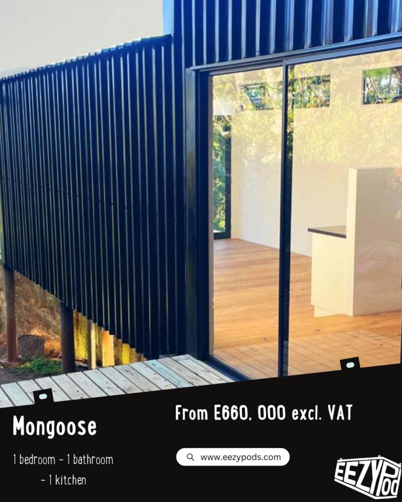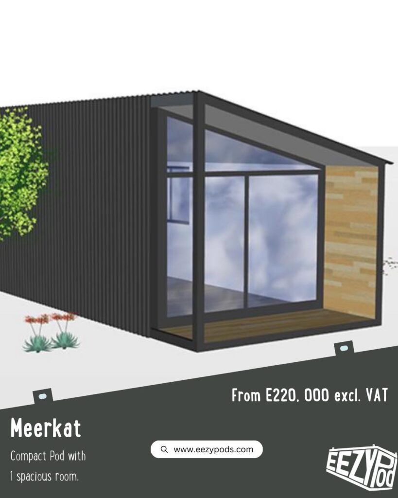- Meerkat Pod: A compact starter unit ideal as an office, gym, or guest room with the option to add bathrooms or kitchens later.