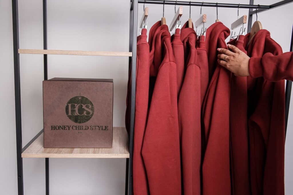 The name HoneyChildSty’e was inspired by her circle of girlfriends. “We used to affectionately call each other ‘honeychild.’ That term came to represent sisterhood, style, and confidence—all things I wanted the brand to embody. Today, as the brand has grown to include menswear, we often use the abbreviation HCS.”
