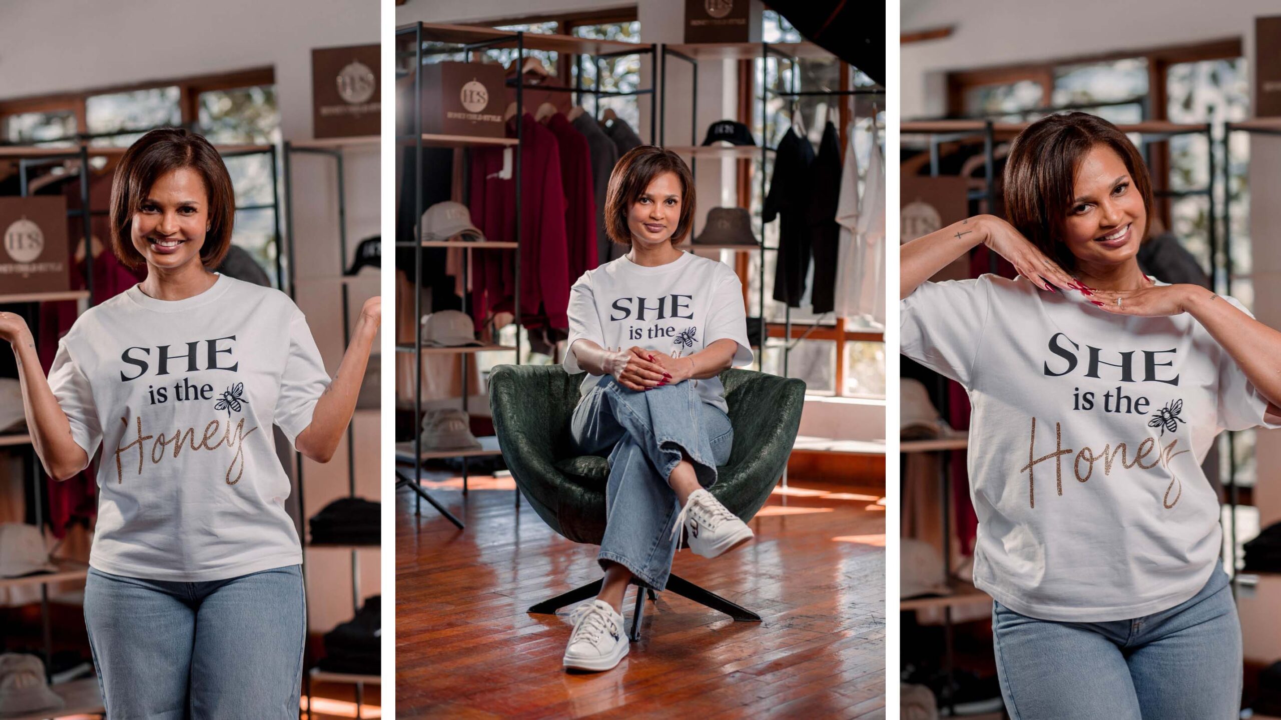 P: This August, Honeychild Style is launching a heartfelt Women’s Month campaign titled “She is the Honey”, a celebration of the softness, strength, and resilience that women bring into our lives. At the heart of the campaign is a limited-edition t-shirt honoring the many ways women nurture, lead, and uplift. A portion of the proceeds from each shirt sold will go to The Brave Girl Initiative, a local organization empowering young girls in Eswatini.